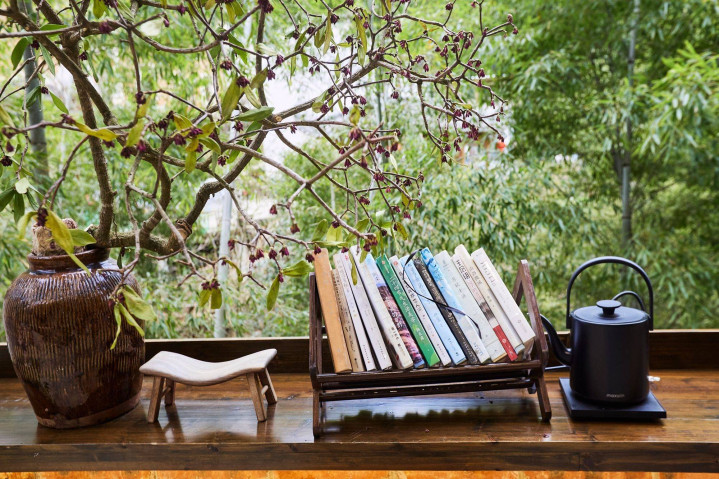 红砖墙搭配着墨绿框架,带着恬淡的田园风。整座建筑设计得和周围竹林完全融为一体,人们在二楼平台赏竹景,而这民宿和小咖啡馆又何尝不是一景?