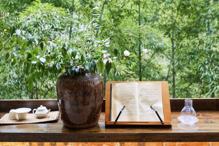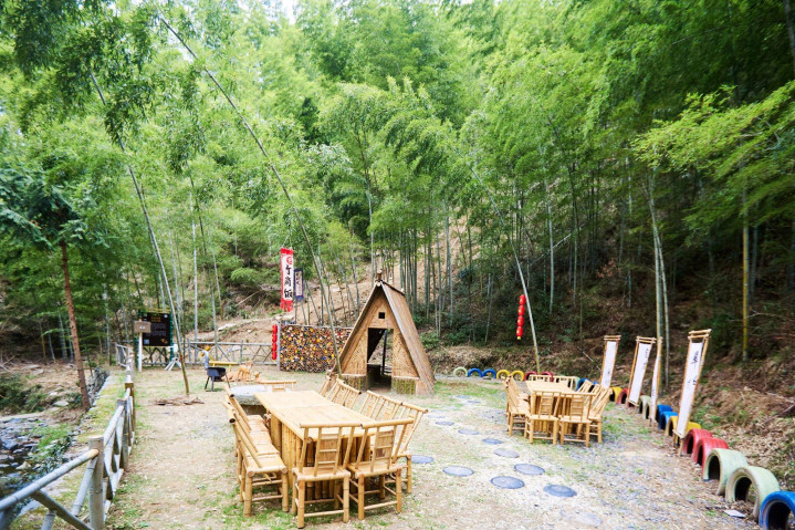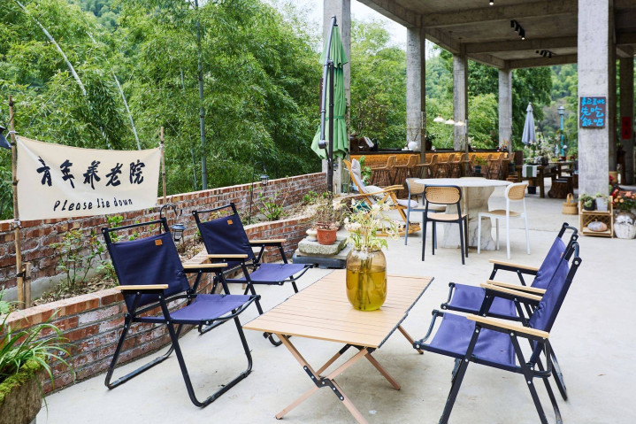 喝杯茶,看本书,对着一片青翠,呼吸着清新的空气,竹叶在头顶如翡翠散盖,被都市生活虐得筋疲力尽的年轻人来到这儿,尽可以“lie down”,短暂享受“养老生活”的惬意自在。
